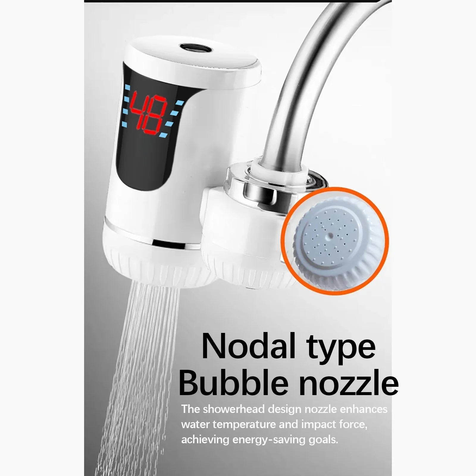 - Electric Hot Water Tap: Upgrade your kitchen or bathroom with the Hot Water Faucet with Digital Display, a convenient and modern solution for quick access to hot water. With its sleek and modern design, it not only enhances the functionality of your room, but also adds a touch of elegance