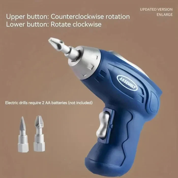 The addition of an electric drill makes screw embedding easier and more fun, with an up button to drive the screw in and a down button to rotate the screw to bring it out